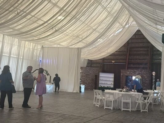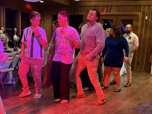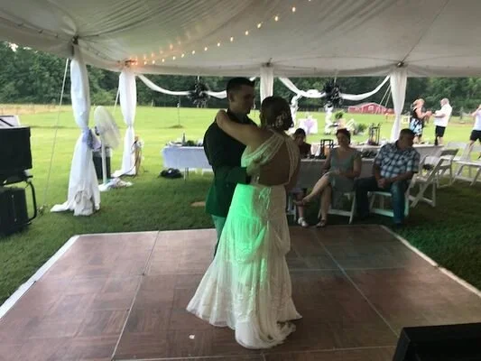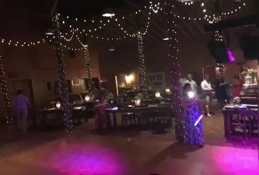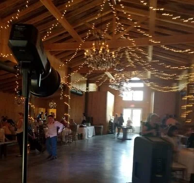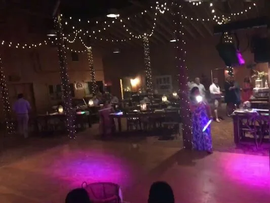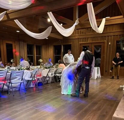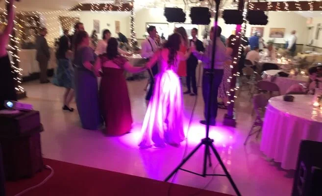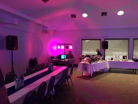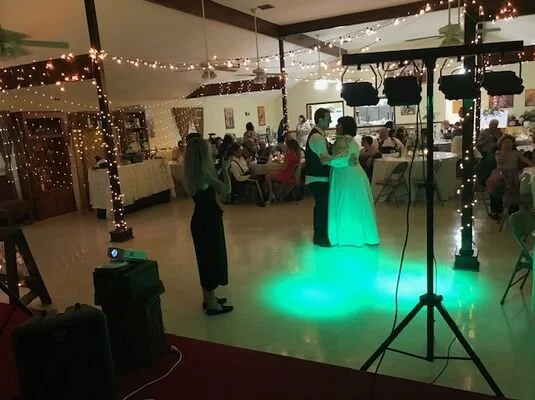 We use 4 wireless mics for toast, announcements, karaoke, or emcee! We use 2 full sets of the Chauvet Gig Bar Move 5-in-1 light shows! We use the Chauvet Pink Scorpion laser machine!" Our light shows are amazing.